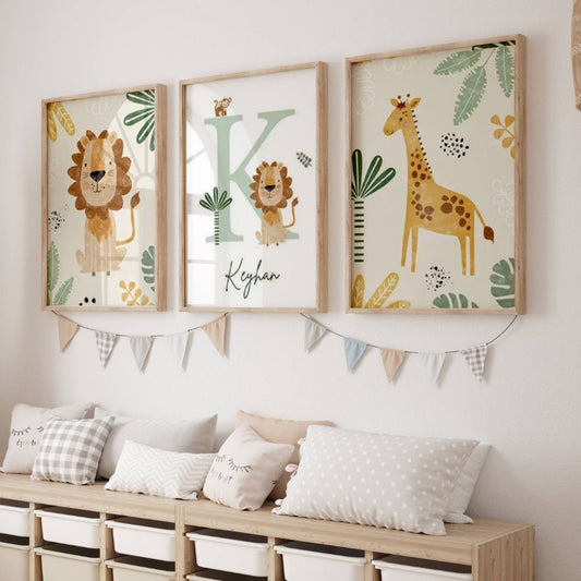 Set 3 affiches Personnalisées Décoration Chambre Bébé Animaux de la Savane