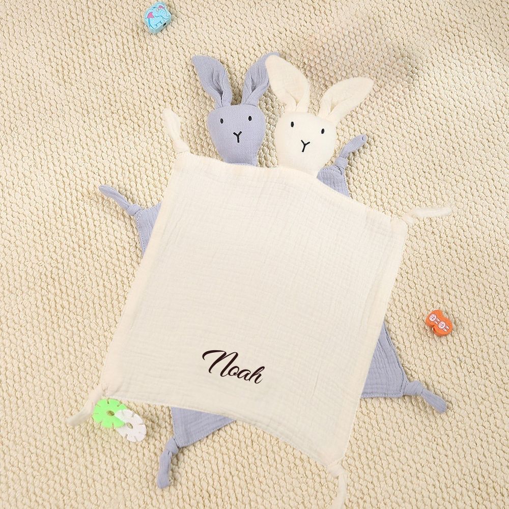 Découvrez notre adorable Doudou Lapin gaze de coton, le compagnon idéal pour veiller sur les nuits et les siestes de bébé. Fabriqué dans une gaze de coton naturellement douce et respirante, il est pensé pour les petites mains. Faites de ce lapin un trésor inoubliable grâce à notre service de cadeau de naissance personnalisé : son prénom est brodé avec soin, assurant un objet unique, tendre et parfait pour les premiers moments de votre enfant.